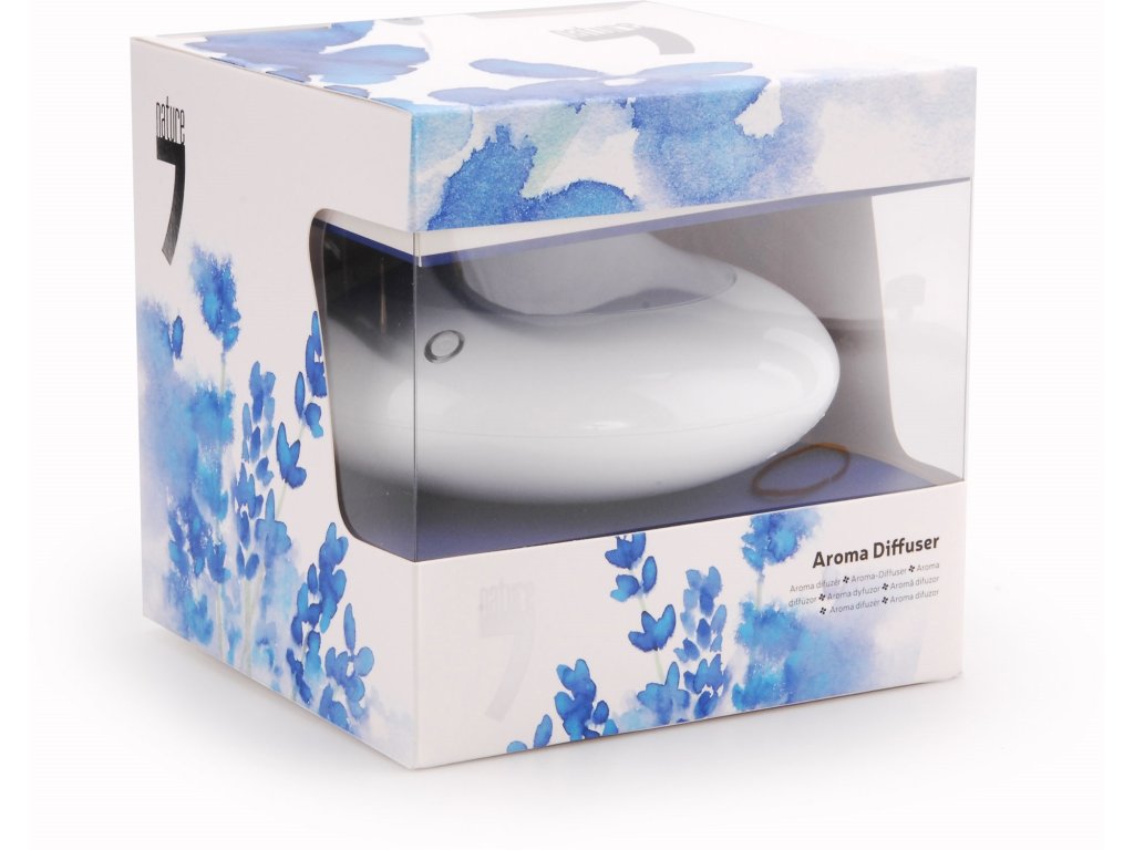 Zvlhčovač vzduchu s difuzérem aromatizuje a zvlhčuje vzduch. Kombinuje účinky vodní mlhy a esenciálních olejů. Pomocí jemného ultrasonického vlnění rozkládá esenciální oleje na extrémně malé mikročástice, aniž by je zahříval. Oleje si tak zachovávají původní vůni i léčivé účinky. Aroma difuzér vám pomůže vytvořit z každého pokoje vonící oázu a navodit relaxační atmosféru. Bez přidání esenciálního oleje vám aroma difuzér poslouží jako zvlhčovač vzduchu. Přidáním konkrétního esenciálního oleje můžete sobě, nebo vašim blízkým pomoci s různými obtížemi. Postačí pár kapek kvalitního oleje a můžete ulevit rýmě, kašli, bolestem hlavy, nebo špatnému usínání. Správně zvolený olej vyčistí vzduch, nebo vám jednoduše zpříjemní pobyt v místnosti, ve které se právě nacházíte. Vhodný do obytných prostor, dětských pokojů, jednacích místností, masážních salónů, wellness center apod. Vhodně zvolenými esenciálními oleji můžete podpořit relaxační atmosféru v ložnici, dezinfekci vzduchu či klidný spánek v dětském pokoji. Koncentraci v pokoji studenta anebo uvolněnou komunikaci, ať už doma nebo v pracovním prostředí. Používejte vždy kvalitní oleje. Použitím levných, umělých olejů sice vytvoříte voňavé prostředí, ale tělo a mysl si neodpočinou. Citlivým osobám může naopak uškodit. Například bolestí hlavy apod. Během provozu aroma difuzéru lze libovolně a jednoduše nastavit světelné efekty, které vytvoří ve vašem pokoji velmi příjemné prostředí a navodí relaxační atmosféru. Aroma difuzér je vhodný všude, kde je z bezpečnostních důvodů nemožné použít otevřený oheň (svíčky v aroma lampách). Kombinuje účinky vodní mlhy a esenciálních olejů. Obsluha aroma difuzéru je velmi jednoduchá. Do zásobníku nalejete vodu, nejlépe destilovanou. Nakapete několik kapek esenciálního oleje a přístroj stiskem zapnete. Aroma difuzér začne okamžitě vytvářet vodní mlhu a rozptylovat olej do vzduchu. Současně střídá barevné podsvícení. Druhým stiskem můžete zvolit jednu konkrétní barvu podsvícení. Třetím stiskem vypnete barevné podsvícení a čtvrtým stiskem ukončíte provoz aroma difuzéru. Nemusíte kontrolovat množství vody v zásobníku. Po vyprázdnění se aromadifuzér sám vypne.