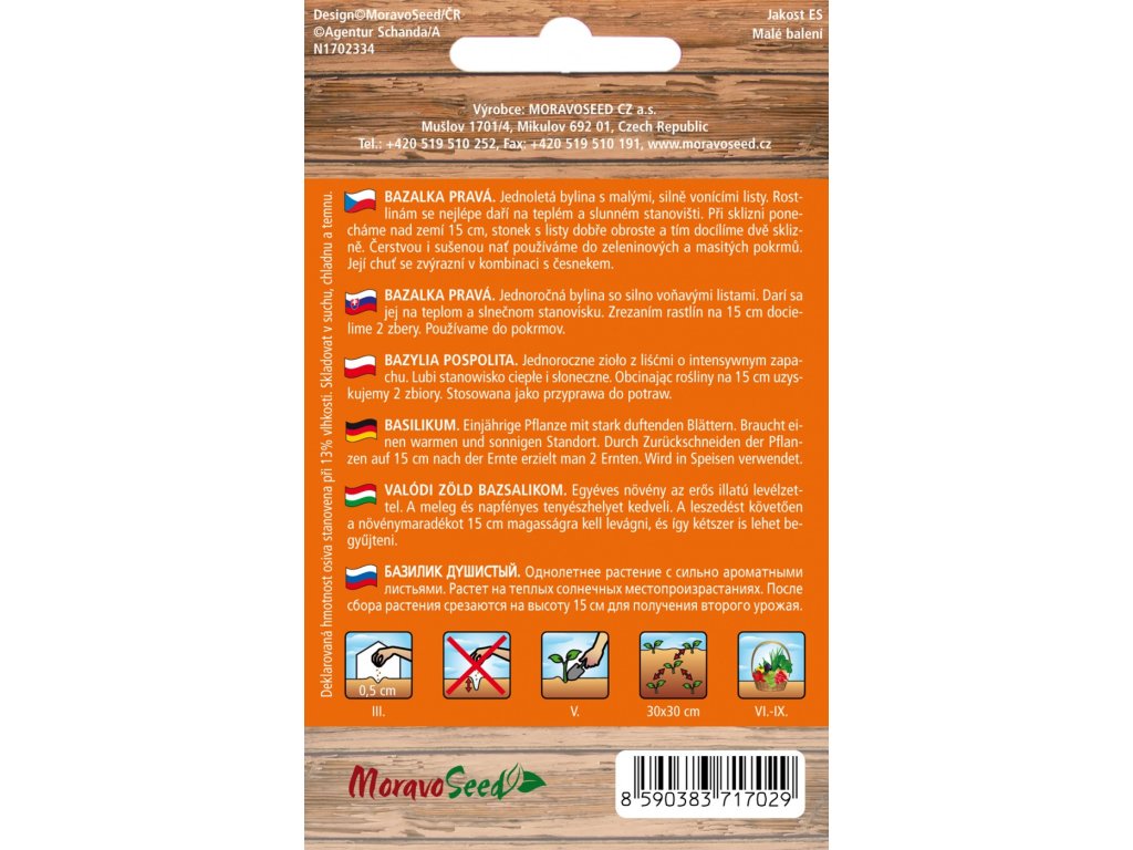 Jednoletá bylina s malými, silně vonícími listy. Rostlinám se nejlépe daří na teplém a slunném stanovišti. Při sklizni ponecháme nad zemí 15 cm, stonek s listy dobře obroste a tím docílíme dvě sklizně. Čerstvou i sušenou nať používáme do zeleninových a masitých pokrmů. Její chuť se zvýrazní v kombinaci s česnekem.