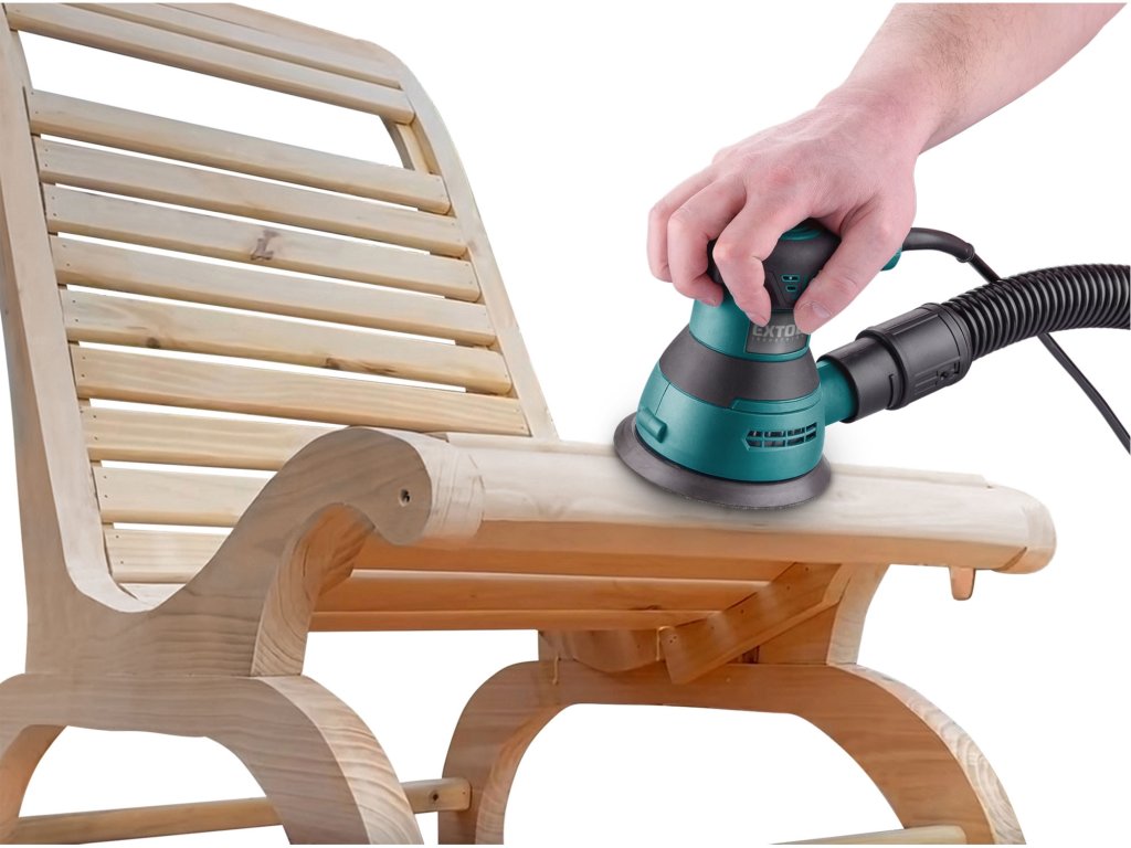 Menší excentrická bruska pro práci jednou rukou je vhodná k suchému broušení dřeva (např. obložení, nábytku, dveří, oken), kovu, umělé hmoty, tmelu, dále k obrušování nátěrů, koroze atd. a k leštění zasucha. Díky malým rozměrům se používá také pro práci v obtížněji přístupných místech. Při práci jednou rukou máte větší cit v ruce a můžete jemněji manipulovat strojem na povrchu materiálu. Orbitální (excentrické) pohyby kotouče zvyšují efektivitu broušení a snižují mechanické stopy na materiálu, které mohou vznikat při broušení ve vysokých rychlostech. Regulace otáček stroje je vhodná při opracovávání různých typů materiálů. Bruska má zabudované odsávání jemného prachu vznikajícího při broušení a ukládá ho do sběrné nádoby, čím výrazně zmenšuje znečištění pracovní plochy a vzduchu při práci. Pokud máte k dispozici průmyslový vysavač, můžete ho také připojit na brusku a tím zvýšit kvalitu odsávání jemného prachu. Brusné papíry jsou upevněny pomocí suchého zipu. Bruska není vhodná pro broušení sádrokartonu.