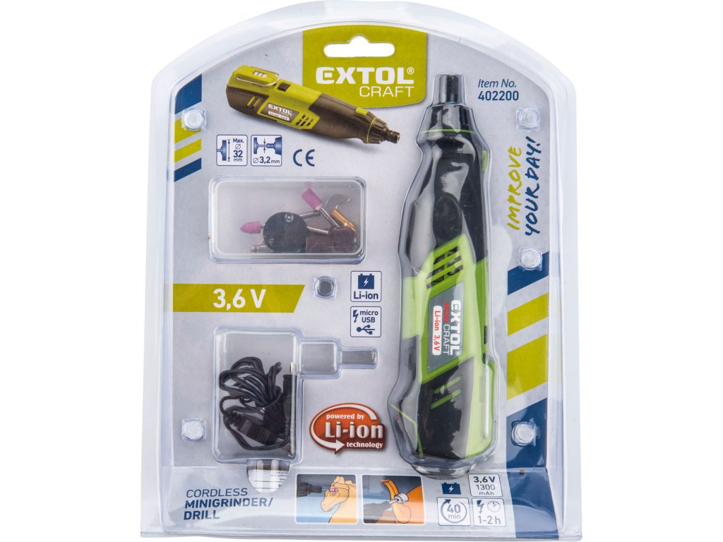 Bruska přímá aku 3,6V Li-ion, 1300mAh, USB nabíjení, Extol Craft