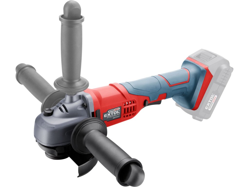 Lehká a výkonná aku úhlová bruska určená pro menší brousící a řezací práce. Její tělo je ergonomicky tvarováno, aby se snadno držela při práci a pogumovaná rukojeť tlumí vibrace. Hlavní výhodou této brusky je akumulátorový pohon, který dovoluje si tuto brusku vzít s sebou tam kde s ní potřebujete pracovat, bez ohledu na to, jestli tam je rozvod elektrické energie. Bruska má bezpečnostní pojistku proti náhodnému spuštění a je vybavena systémem "soft start", který nastartuje brusku bez škubnutí, čímž šetří nejen Vaše klouby, ale také ozubená kola v brusce. Pro běžnou práci dostačují jeden nebo dva 2000mAh akumulátory, které můžete rychle nabít v rychlonabíječce, pro náročnější nebo delší práci doporučujeme větší akumulátory s kapacitou 4000–8000mAh. Akumulátor lze použít ve všech typech nářadí řady EXTOL SHARE20V. Díky použité Li-ion technologii je ho možné kdykoliv dobíjet, aniž by se tím snižovala jeho kapacita. Li-ion akumulátor ztrácí energii vlivem samovybíjení velmi pomalu a vydrží dlouho nabitý a připravený k použití.