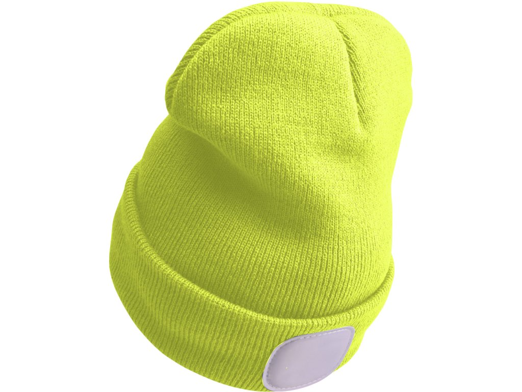 Čepice s čelovkou 4x45lm, USB nabíjení, fluorescentní žlutá, univerzální velikost, 73% acryl a 27% polyester.
