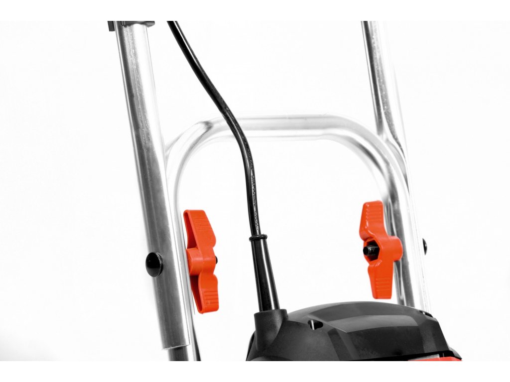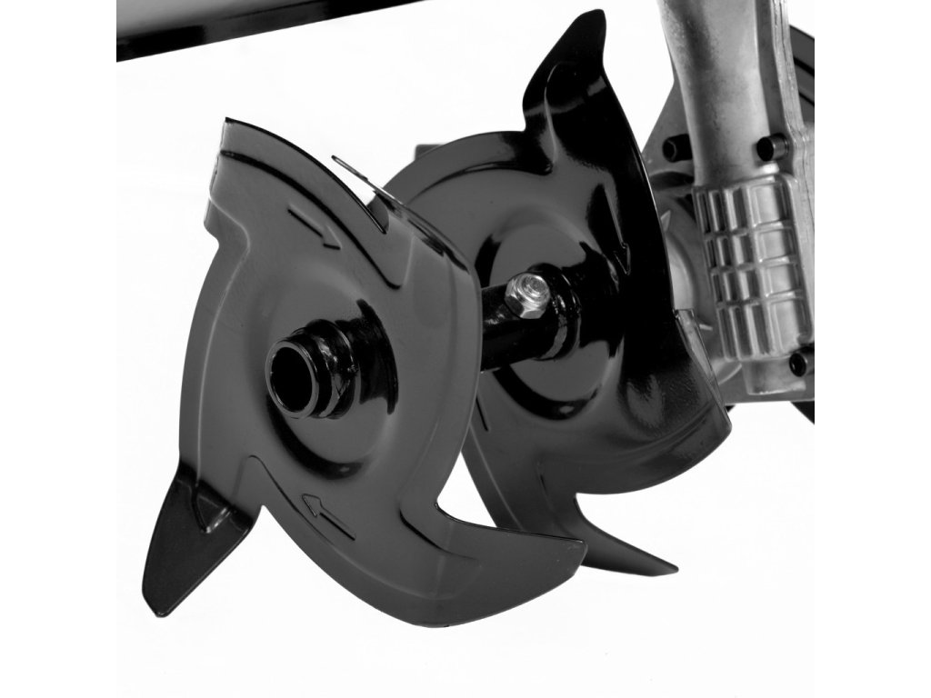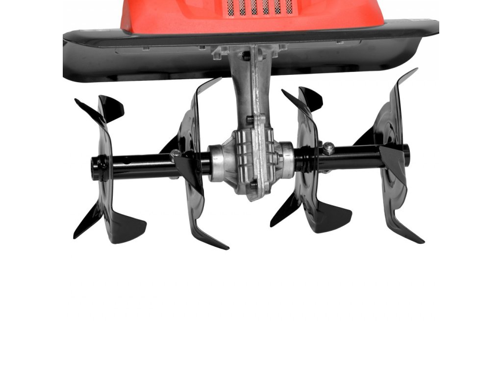 Elektrický kultivátor se záběrem 36,5 cm. Příkon 1000 W. Průměr nožů 20 cm. Hmotnost 8,4 kg.