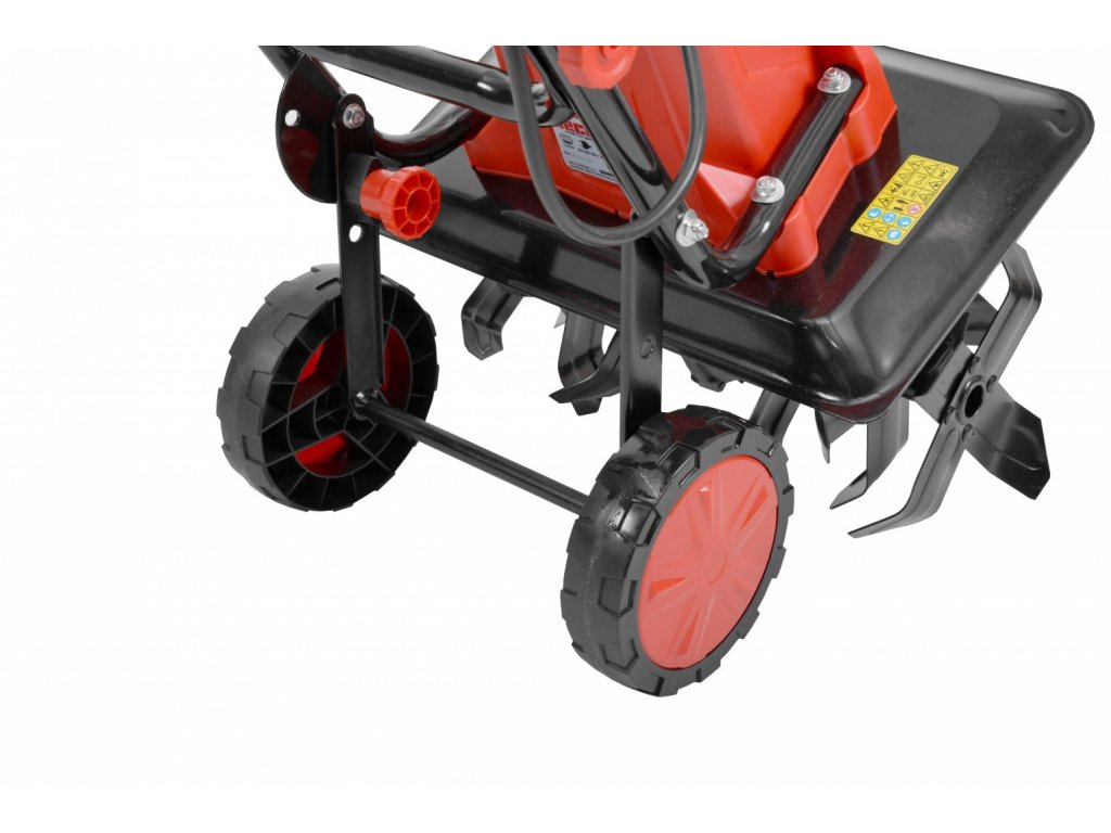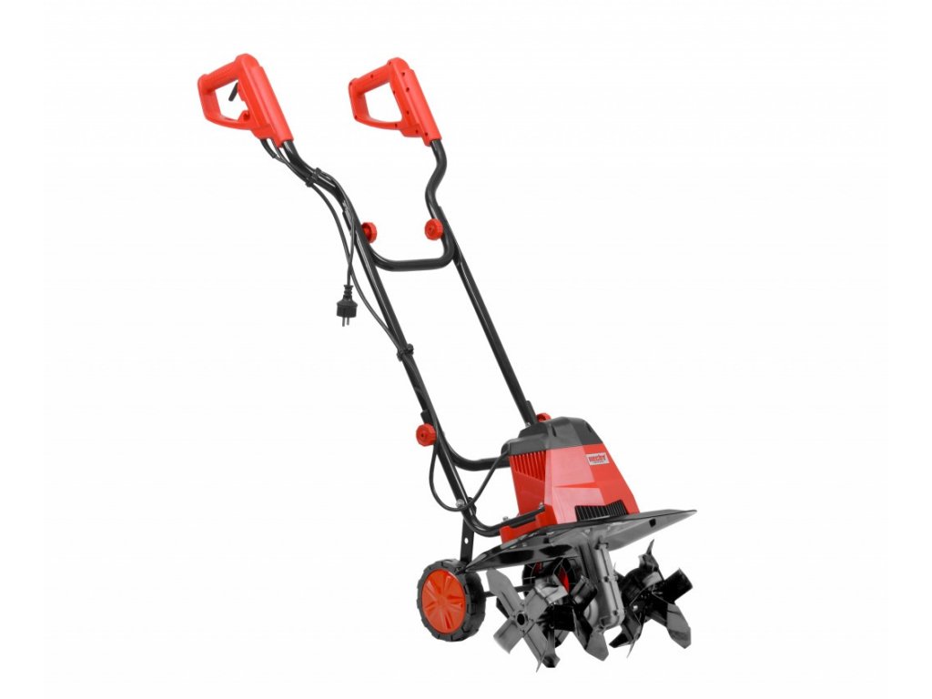 Elektrický kultivátor se záběrem 40cm. Příkon 1500W. Průměr nožů 20,5cm. Hmotnost 11,6kg.