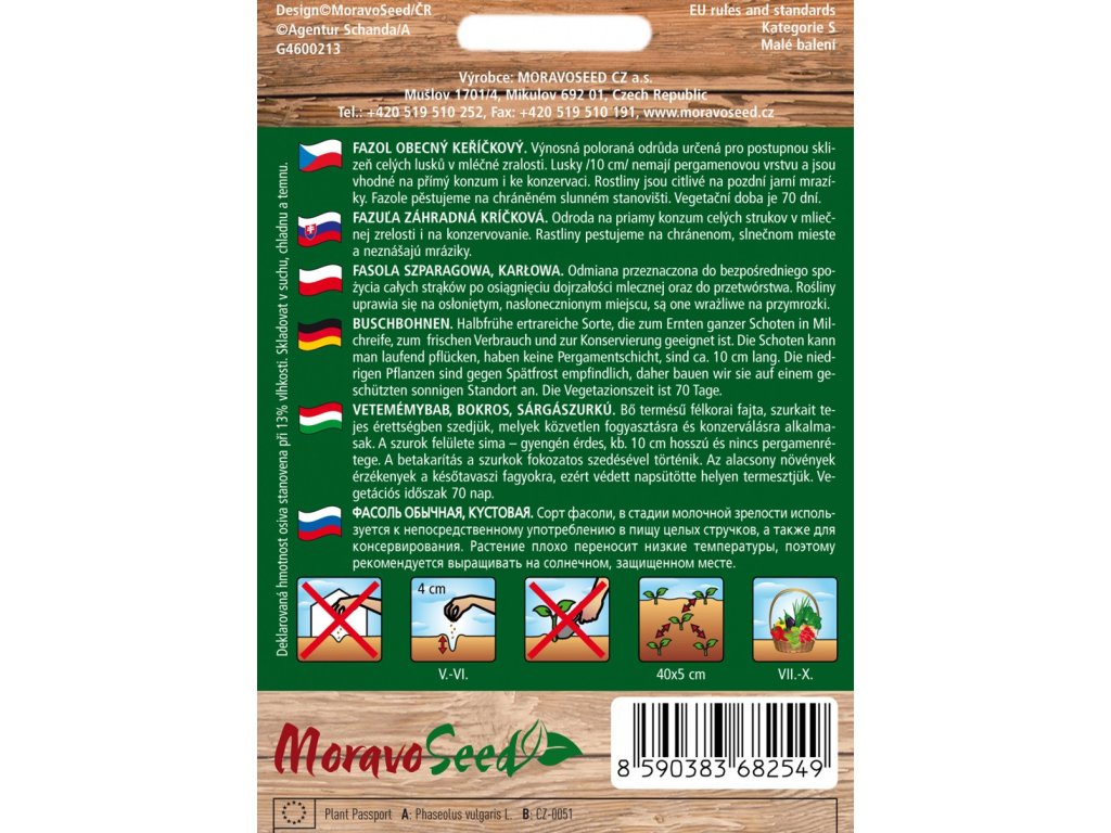 Výnosná poloraná odrůda určená pro postupnou sklizeň celých lusků v mléčné zralosti. Lusky /10 cm/ nemají pergamenovou vrstvu a jsou vhodné na přímý konzum i ke konzervaci. Rostliny jsou citlivé na pozdní jarní mrazíky. Fazole pěstujeme na chráněném slunném stanovišti. Vegetační doba je 70 dní.