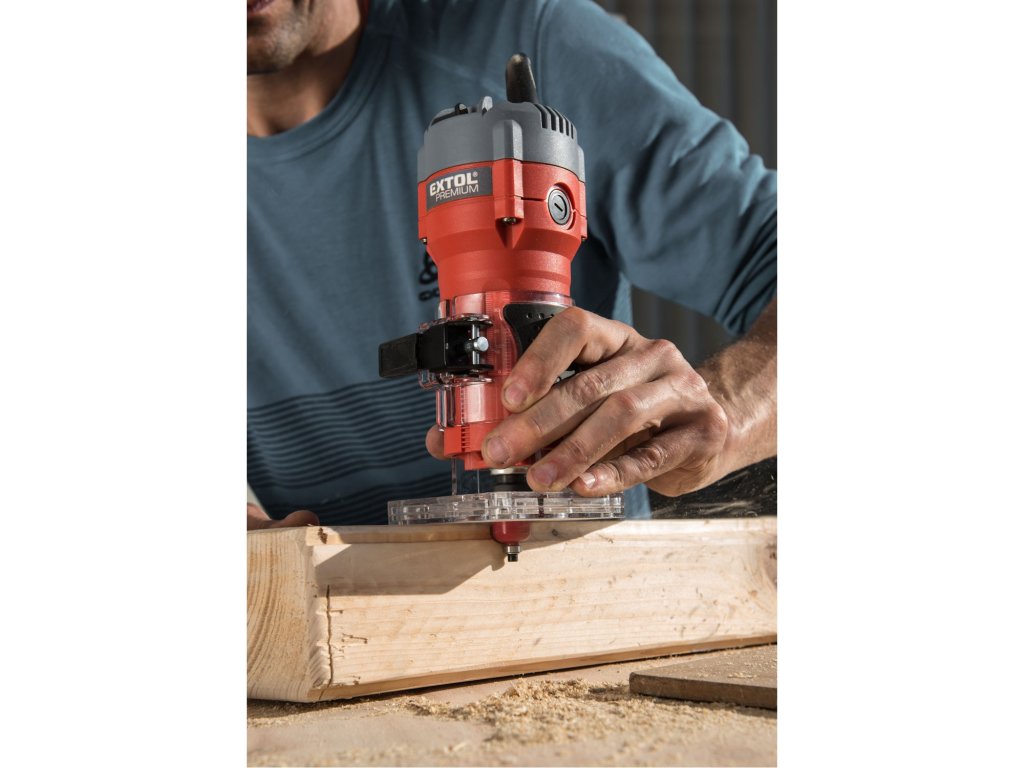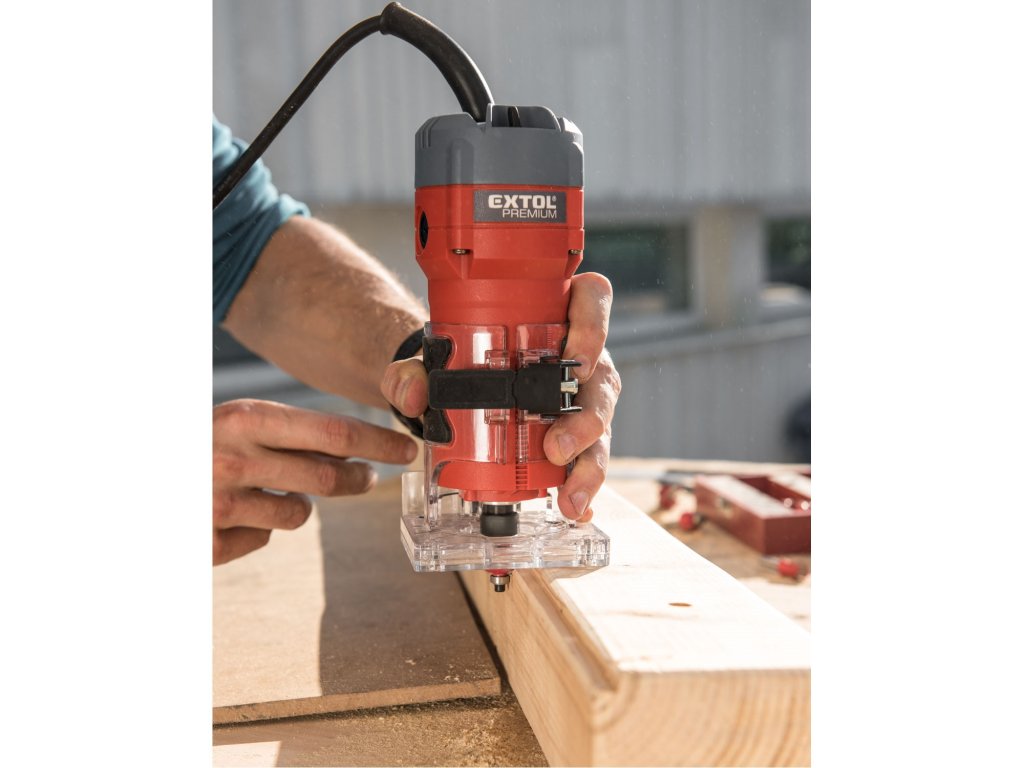 Ohraňovací frézka se vyznačuje jednoduchostí a spolehlivostí. Tato jednoruční minifrézka je určena k frézováni otvorů, hran a profilů do dřeva s různými tvary v závislosti na tvaru použité tvarové frézy. Malé rozměry a nízká hmotnost umožňují vedení frézky jednou rukou a snadnou manipulaci při práci. Vysoké otáčky zajistí dokonale hladký opracovaný povrch. K frézce jsou přibaleny tři různá vodítka pro vedení frézky při práci. Válečkové vodítko pro frézování oblých hran. Podélné vodítko pro frézování podél rovných hran a kružnic. Kopírovací vložka pro frézování dle přiloženého vzoru. Stojan frézky umožňuje nastavit hloubku frézování.