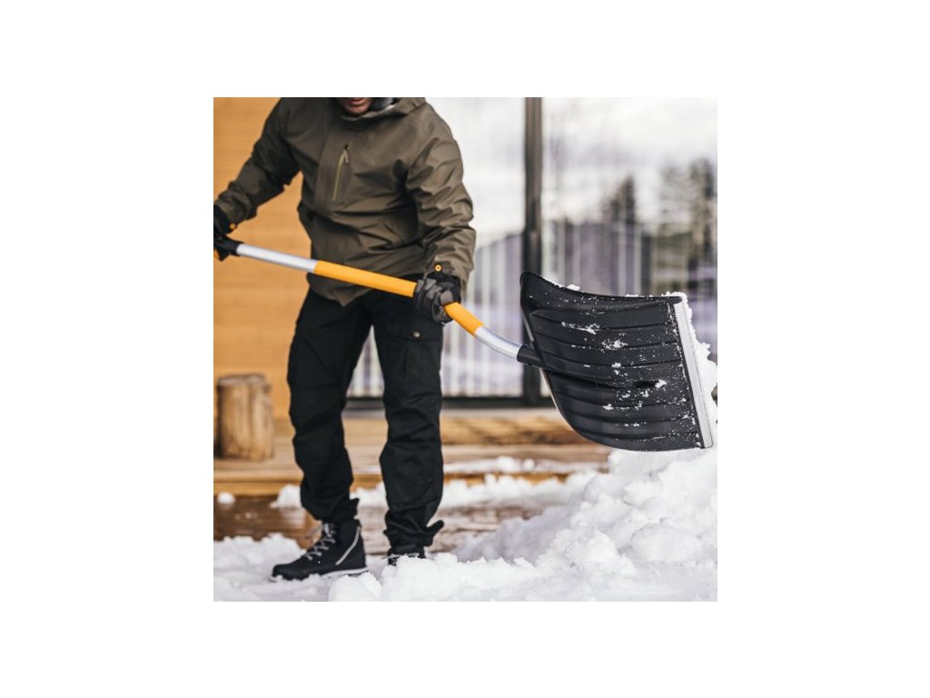 - Ergonomické hrablo na sníh X-series™ Fiskars má širokou lopatu ideální na odklízení velkého množství sněhu z příjezdových cest, chodníků a dalších ploch