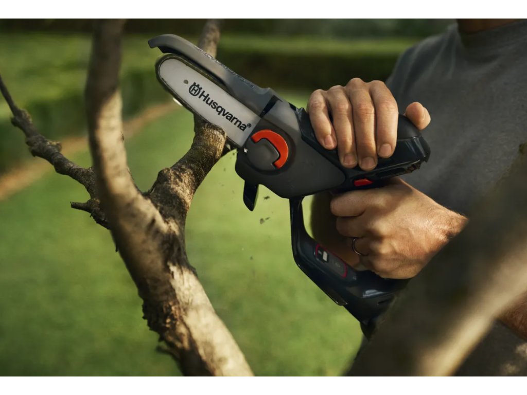 Kompaktní ruční akumulátorová prořezávací pilka, ideální pro prořezávání stromů, odstraňování nežádoucích dřevin a menší tesařské práce. Tato malá, ale všestranná prořezávací řetězová pila je dostatečně robustní, aby snadno řezala větve o šířce 75 mm. Protiskluzová rukojeť a automatické vypnutí při ponechání bez dozoru zvyšují bezpečnost při používání pily. Výměna řetězu a lišty je snadná bez použití nářadí. Pilka použivá akumulátor z 18V akumulátorového systému aliance POWER FOR ALL, díky kterému lze jeden akumulátor použít pro nástroje a vybavení více značek. Uskladnění v menších prostorech je usnadněno přibaleným háčkem vyrobeným na míru, který lze připevnit na zeď nebo použít se systémem úložných kolejnic Husqvarna Aspire™. Řetězový Bio olej je součástí balení (50 ml).