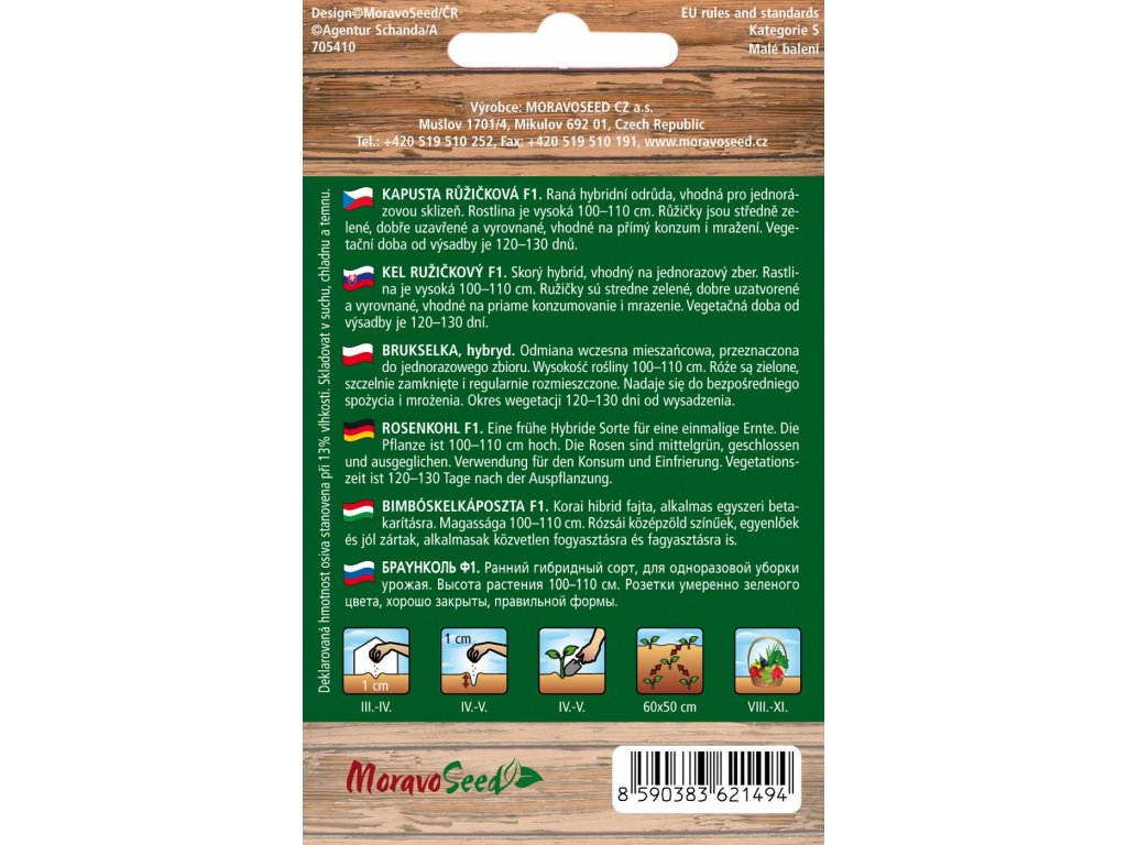 Raná hybridní odrůda, vhodná pro jednorázovou sklizeň. Rostlina je vysoká 100-110 cm. Růžičky jsou středně zelené, dobře uzavřené a vyrovnané, vhodné na přímý konzum i mražení. Vegetační doba od výsadby je 120-130 dnů.