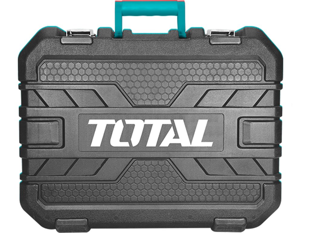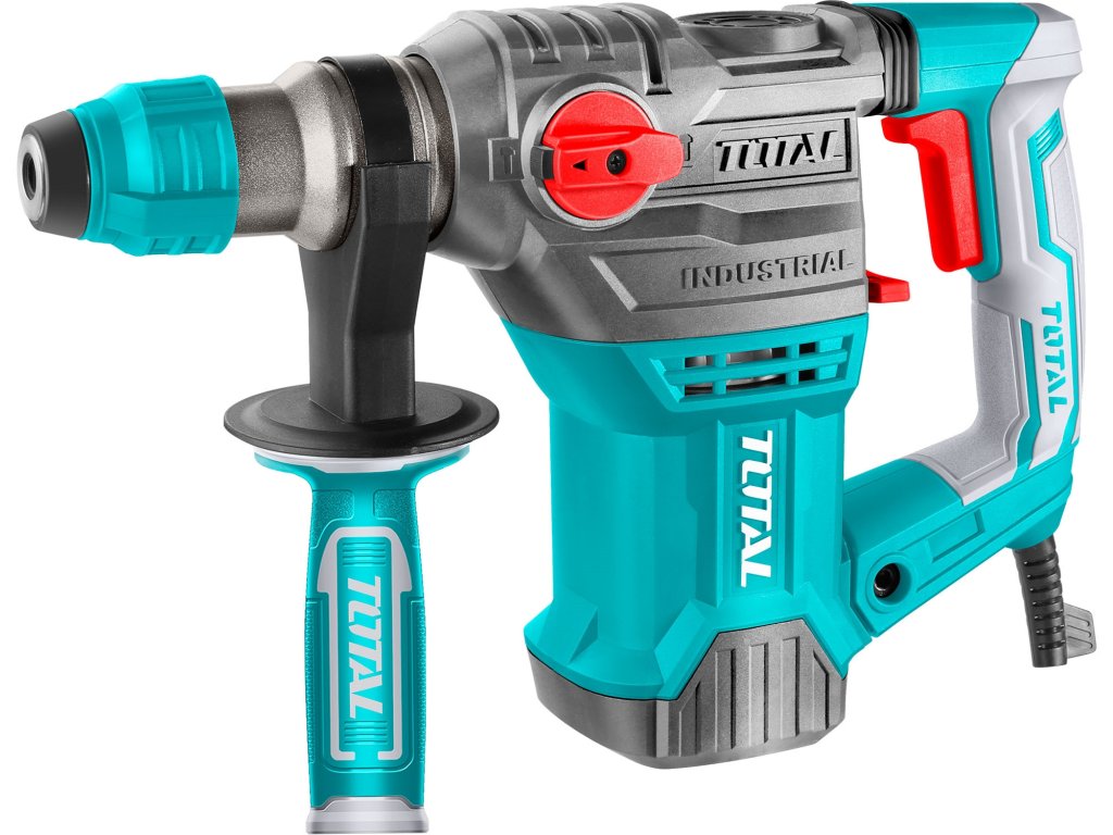 Vrtací a sekací kladivo určené pro náročnější vrtání do betonu a zdiva, lehké a středně těžké sekání do zdiva a betonu a osekávání obkladů či omítek. Toto kladivo se vyznačuje celokovovou masivní převodovkou. Polohovatelná rukojeť Vám umožní nastavit úchop tak, jak jej zrovna potřebujete. Síla úderu je 5,5J. Kladivo je vybaveno zámkem sekáče, které udržuje sekáč při sekání ve stejné poloze. Odpružená protiskluzová pogumovaná rukojeť snižuje vibrace při práci. Je vybaveno SDS Plus úchytem, 850 otáčkami/min a 4400 příklepy/min. Je dodáváno v kufru a součástí kladiva jsou i 3 kusy vrtáků a 3 kusy sekáčů. Doplňuje úspěšnou řadu vrtacích kladiv značky TOTAL Tools.