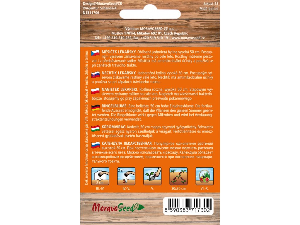 Oblíbená jednoletá bylina vysoká 50 cm. Postupným výsevem získáváme rostliny po celé léto. Rostliny můžeme pěstovat i z předpěstované sadby. Měsíček má antimikrobiální účinky a používá se při zánětech trávicího traktu.