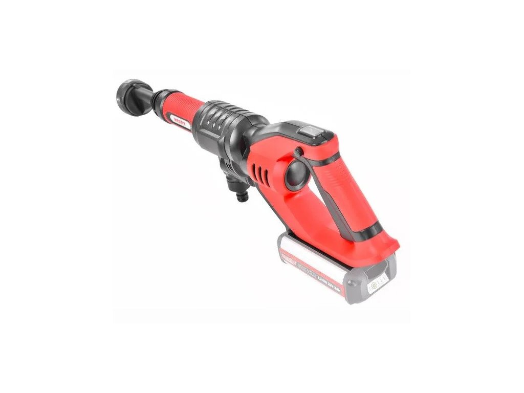 Zásadní výhodou je velice snadná obsluha i příprava. Stačí jen připojit hadici a nasadit nabitý akumulátor.