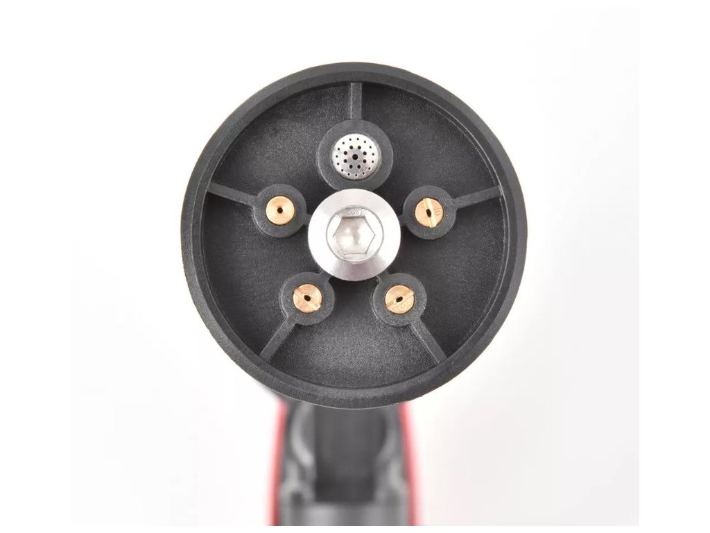 Myčka je dodávána s variabilní tryskou, pouhým pootočením můžete vybírat za 4 typů trysek určených pro tlakové mytí a jednou tryskou pro kropení.
