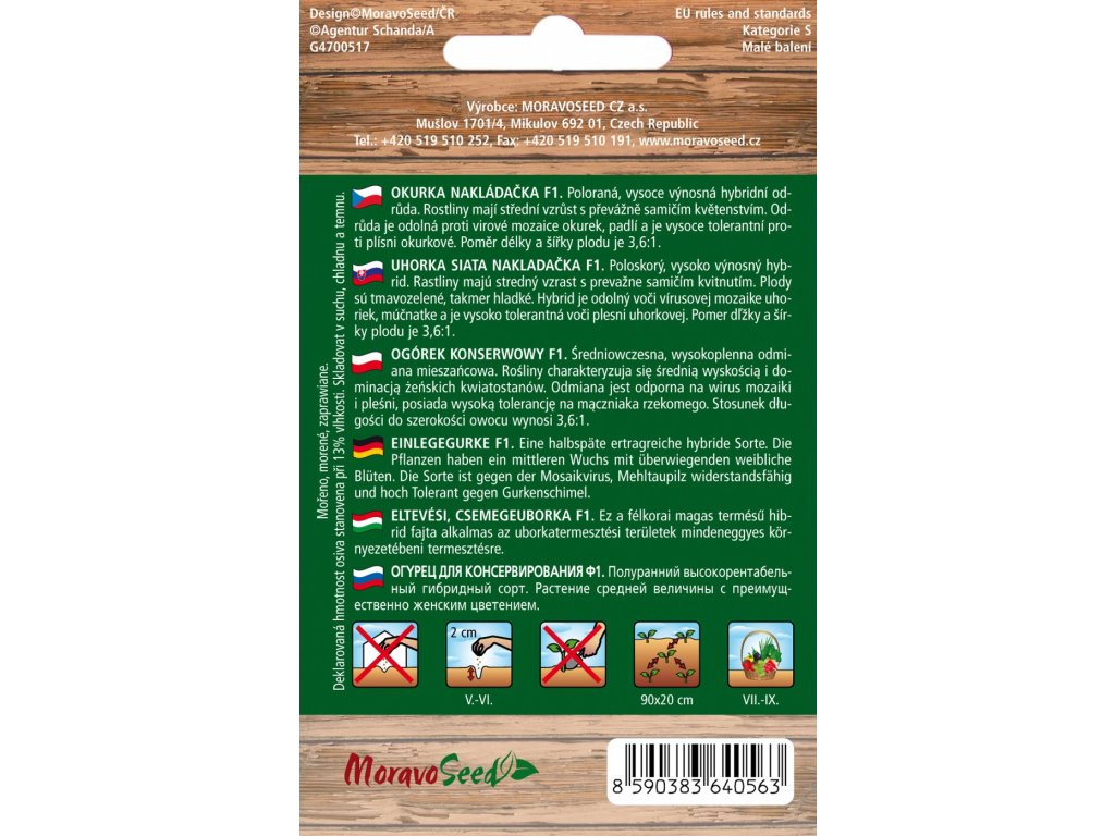 Poloraná, vysoce výnosná hybridní odrůda. Rostliny mají střední vzrůst s převážně samičím květenstvím. Odrůda je odolná proti virové mozaice okurek, padlí a je vysoce tolerantní proti plísni okurkové. Poměr délky a šířky plodu je 3,6:1.