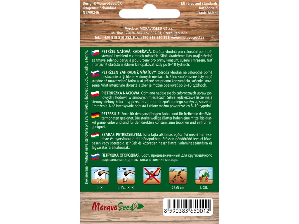 Odrůda vhodná pro celoroční polní pěstování i rychlení v zimních měsících. Silně zkadeřené listy mají středně až tmavě zelenou barvu a jsou určeny pro přímý konzum, sušení i mrazení. Nať intenzivně obrůstá a sklizeň lze opakovat vždy po 8-10 týdnech.