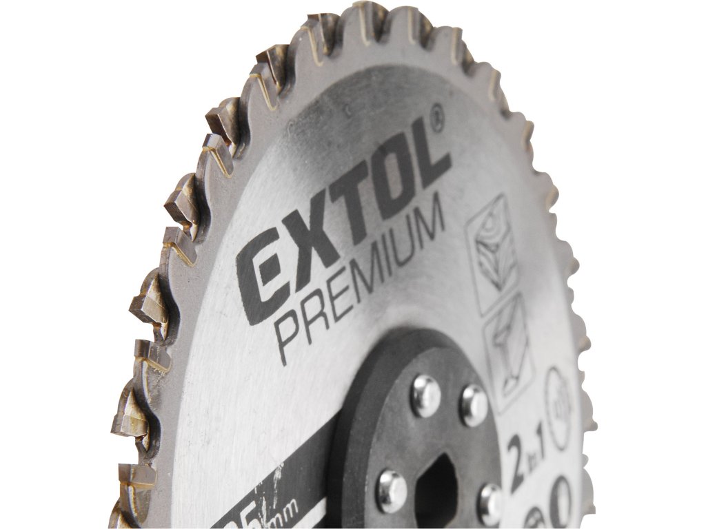 - díky materiálu dvoukotouče je možné používat stejný dvoukotouč na dřevo, plast, ocel, neželezné kovy, plech, např. dřevo s nekalenými hřebíky a šrouby