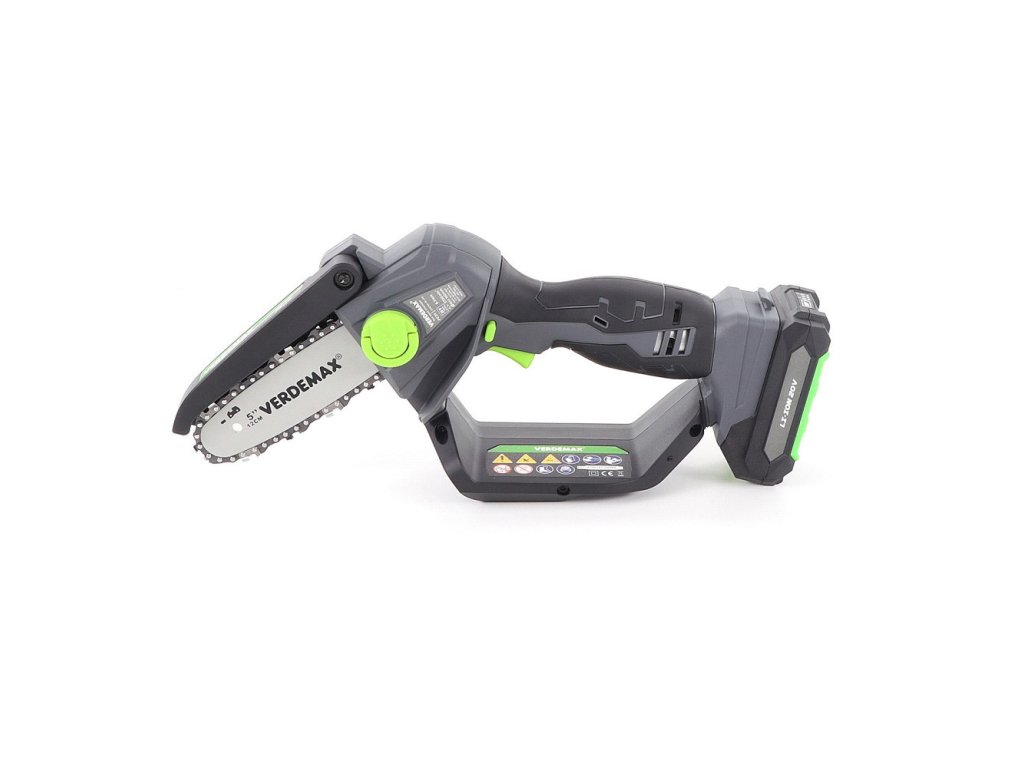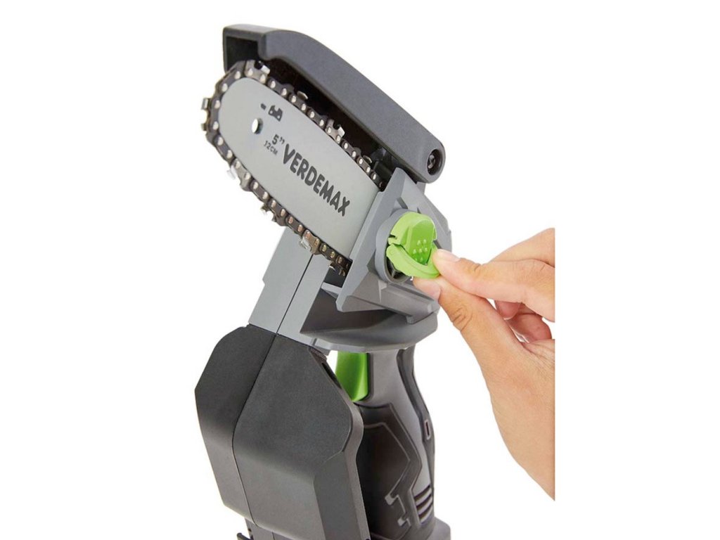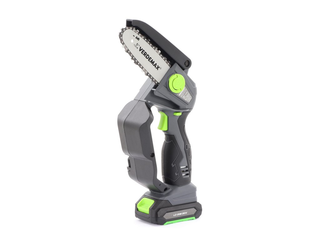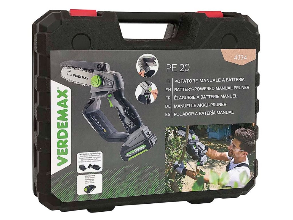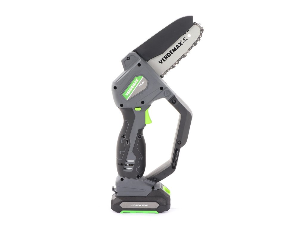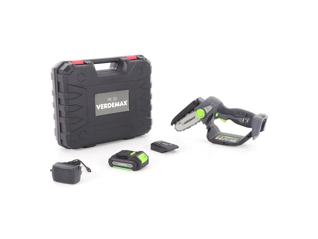 VERDEMAX PE20 Aku jednoruční řetězová pila je ergonomická výborně sedí do ruky, usnadní práci jak v koruně stromu při prořezávání, odřezávání, odvětvování a zkracování. Je to skvělý pomocník na úpravu stromů , keřů , vinic atd….