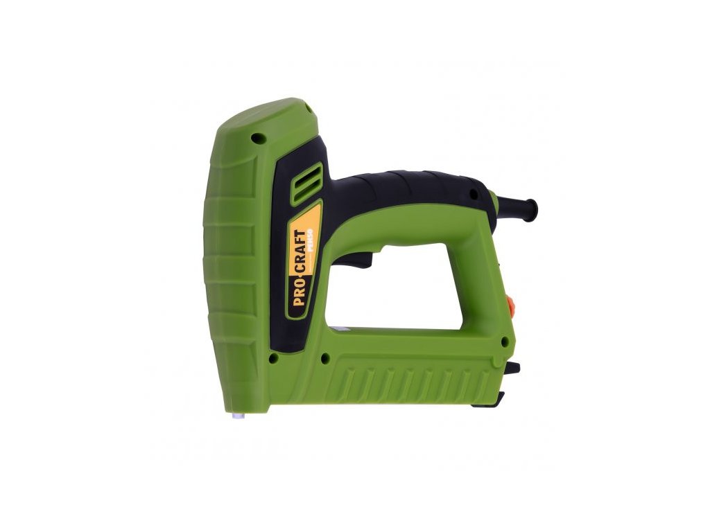 Elektrická sponkovačka Procraft PEH50 je určena k upevňování textilu, fólií, izolačního materiálu na dřevo. Regulace síly úderu umožňuje nastavení optimálních parametrů při práci s různými materiály. Sponkovačka má zásobník na 100sponek s délkou v rozsahu 8-16 a mm a na 100 hřebíků s délkou v rozsahu 8-20mm. Šířka sponek 10,6mm. Součástí dodávky jsou spony a hřebíky.
