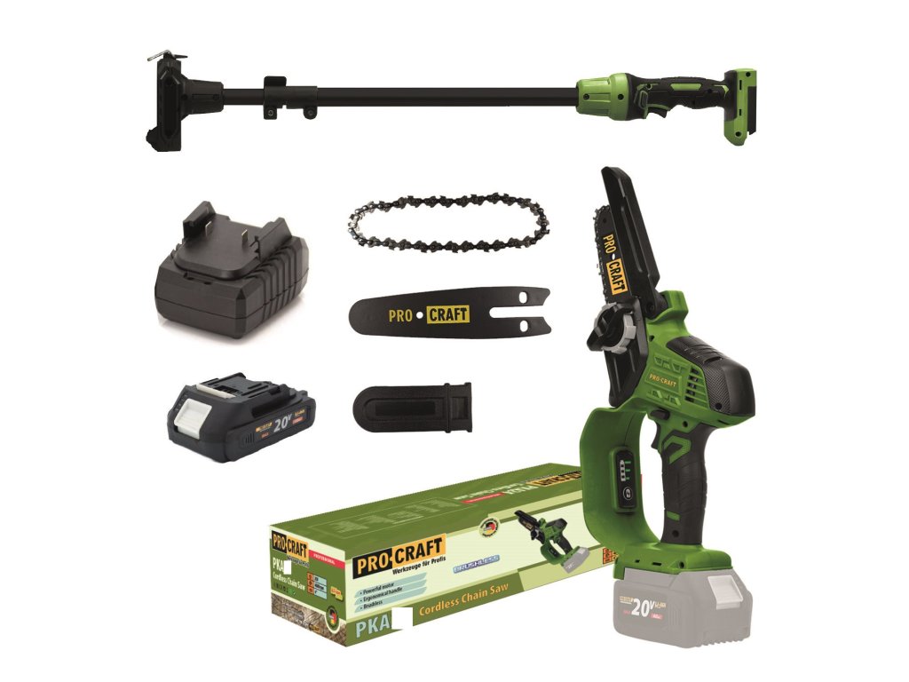 Prodlužovací nástavec k pile Procraft PKA24Li Teleskopická tyč, možnost řezání vysokých živých plotů nebo stromu. Délka: 125 - 165 cm