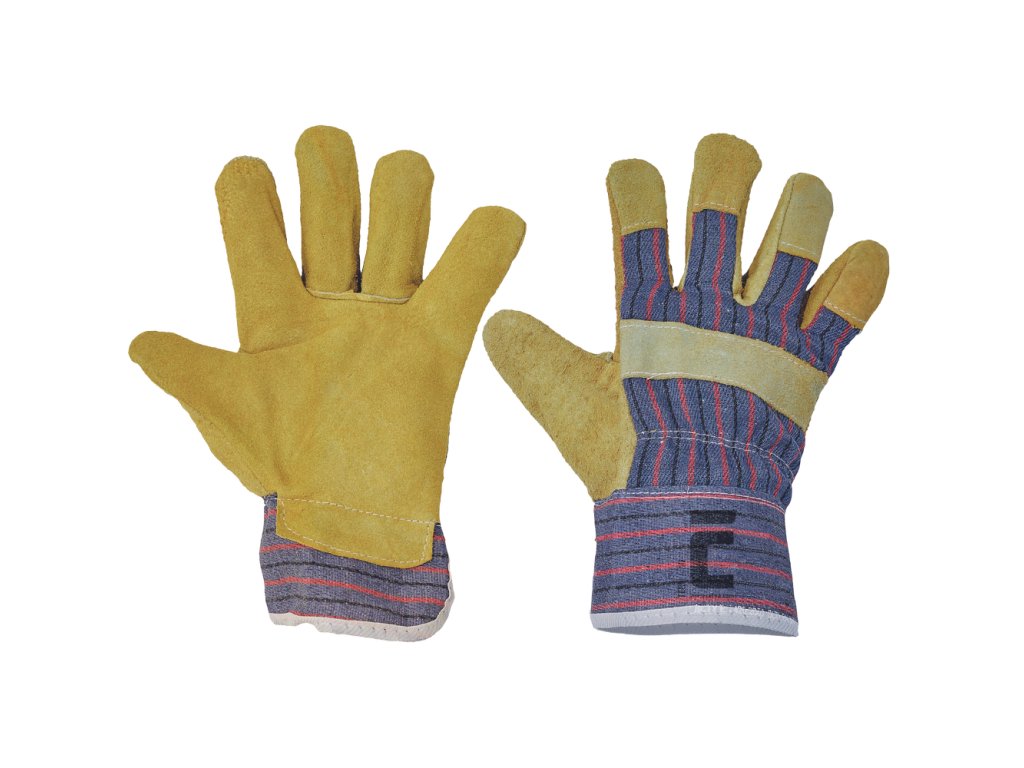 • rukavice z hovězí štípenky v dlani s podšívkou • hřbet a manžeta z bavlněné tkaniny