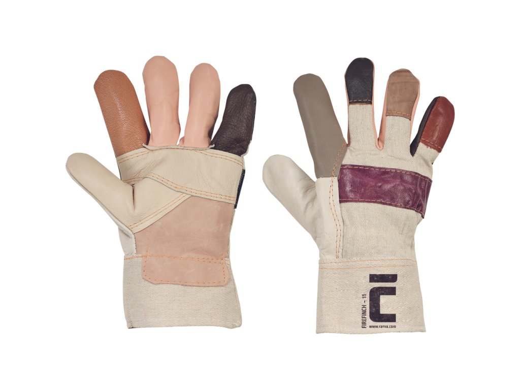 • rukavice z různobarevné lícové nábytkové hověziny v dlani • teplá podšívka • bavlněná tkanina na hřbetu a manžetě