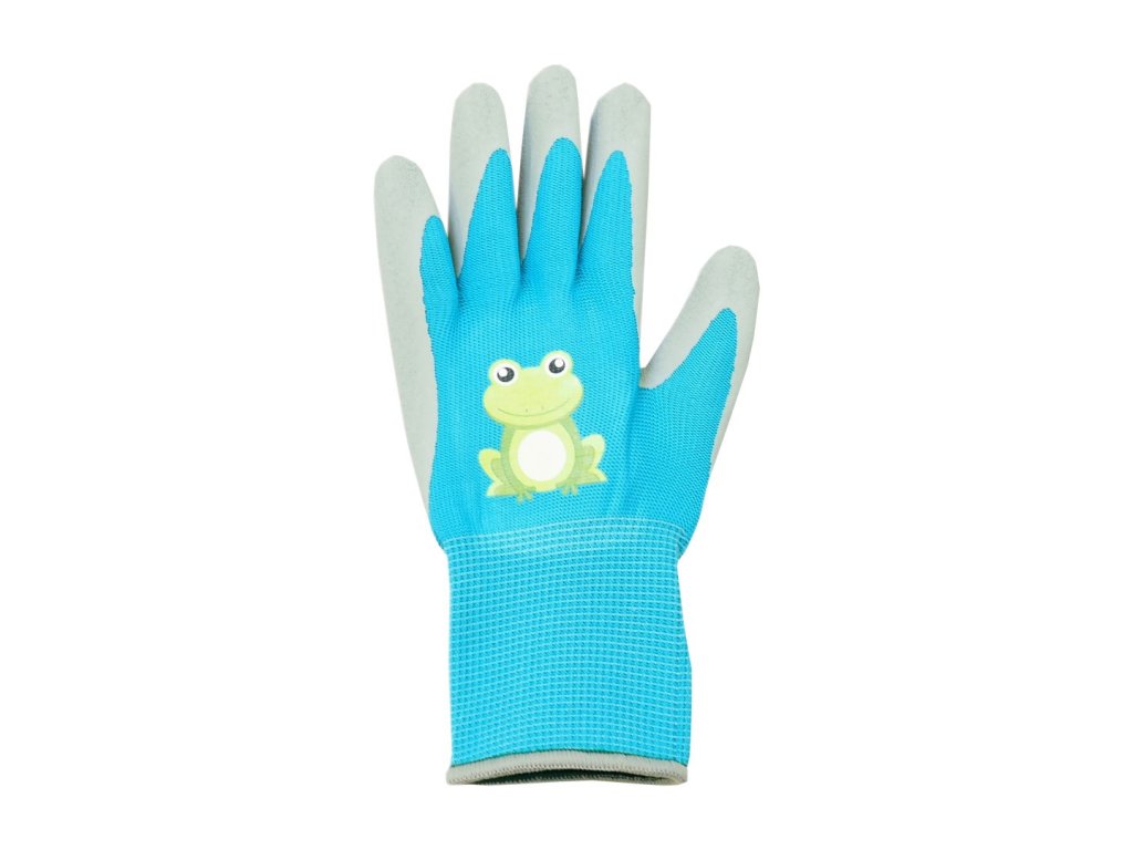 Dětské zahradní rukavice z jemného úpletu s latexovou pěnovou úpravou a zvrásněným povrchem. Rukavice, které se vyznačují dobrou odolností proti oděru.