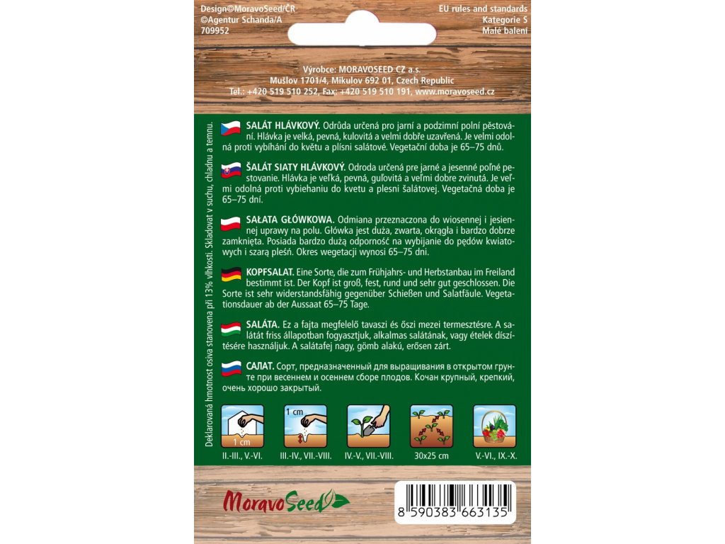 Odrůda určená pro celoroční polní pěstování zejména z přímých výsevů. Hlávka je velká, tmavší, pevná a velmi dobře uzavřená. Je velmi odolná proti vybíhání do květu. Má velmi dobrý zdravotní stav. Vegetační doba je 63-75 dnů.