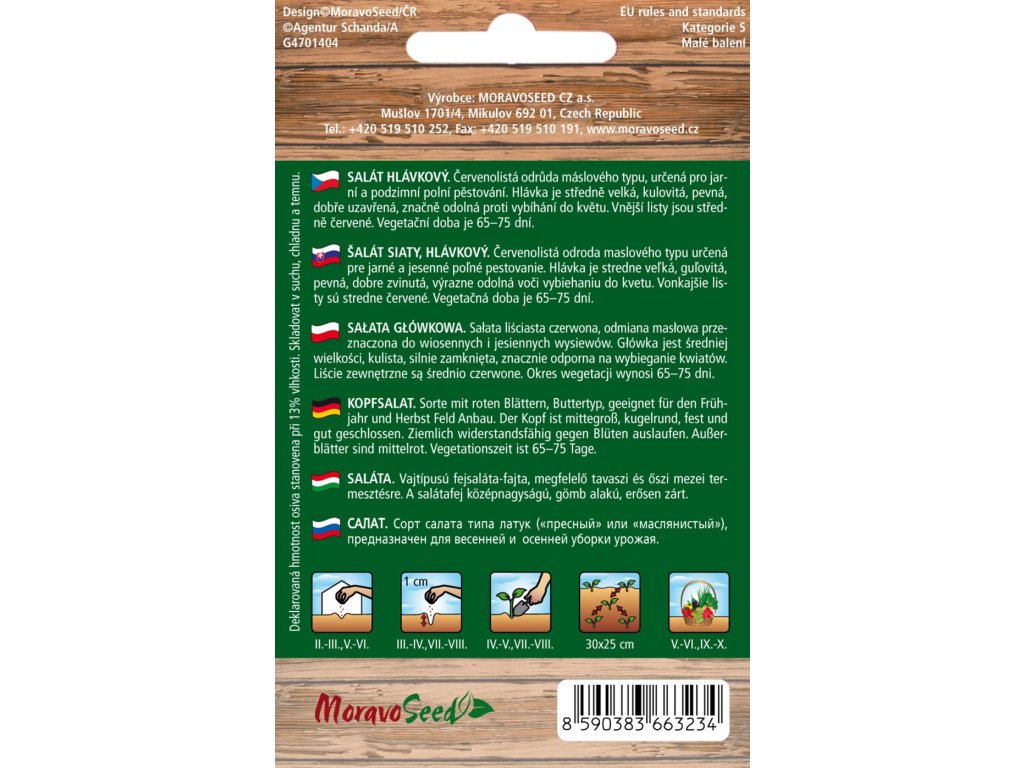 Červenolistá odrůda máslového typu určená pro jarní a podzimní polní pěstování. Hlávka je středně velká, kulovitá, pevná dobře uzavřená, značně odolná proti vybíhání do květu. Vnější listy jsou středně červené. Vegetační doba je 65-75 dní.