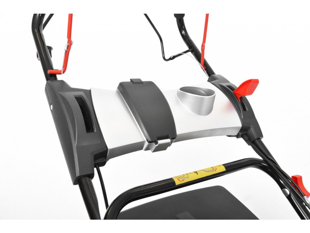 Přes masívní zpracování sekačka váží pouhých 32 kg. Pro zachytávání posekané trávy slouží 55 l koš z plastu a odolné textilie, který je pro lepší kontrolu stavu naplnění opatřen kontrolní klapkou. Tato klapka díky změnám v proudění vzduchu v závislosti na naplnění koše mění svou polohu a tak má obsluha vždy přehled o obsahu koše. Pevně uchycená rukojeť je díky použití křídlových matic snadno složitelná a najdete na ní snadno dostupné všechny hlavní ovládací prvky sekačky. Příjemné je polstrované madlo zmírňující přenášení vibrací. Modely od r.v. 2016 jsou dodávány bez panelu na madle a přední části.