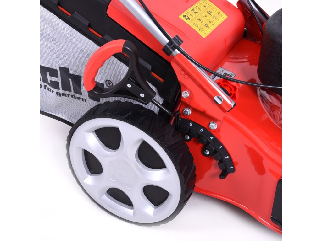 Ovládání sekačky pro každého – celá sekačka je ergonomicky navržena tak, aby zajišťovala co nejpohodlnější užívání spolu s perfektními výsledky sečení. Sedmistupňové centrální nastavení výšky zdvihu od 25 do 75 mm zaručí optimální využití na každé zahradě. Pohodlné madlo s měkčeným úchopem lze snadno nastavit dle výšky postavy nebo složit pro lepší skladování. Dlouhá madla pro ovládání brzdy a pojezdu jsou vhodná jak pro praváky, tak pro leváky. Pro pohodlné přenášení je sekačka navíc vybavena předním madlem.