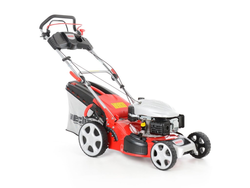 Provoz zajišťuje kvalitní motor HECHT OHV o jmenovitém výkonu 2,4 kW, který spolehlivě zvládne žací nůž i pojezd. Pro hladký chod je sekačka vybavena kvalitní převodovkou a kuličkovými ložisky. Díky rychlosti pojezdu 3,6 km/h je sečení pohodlné a není zbytečně zdlouhavé.