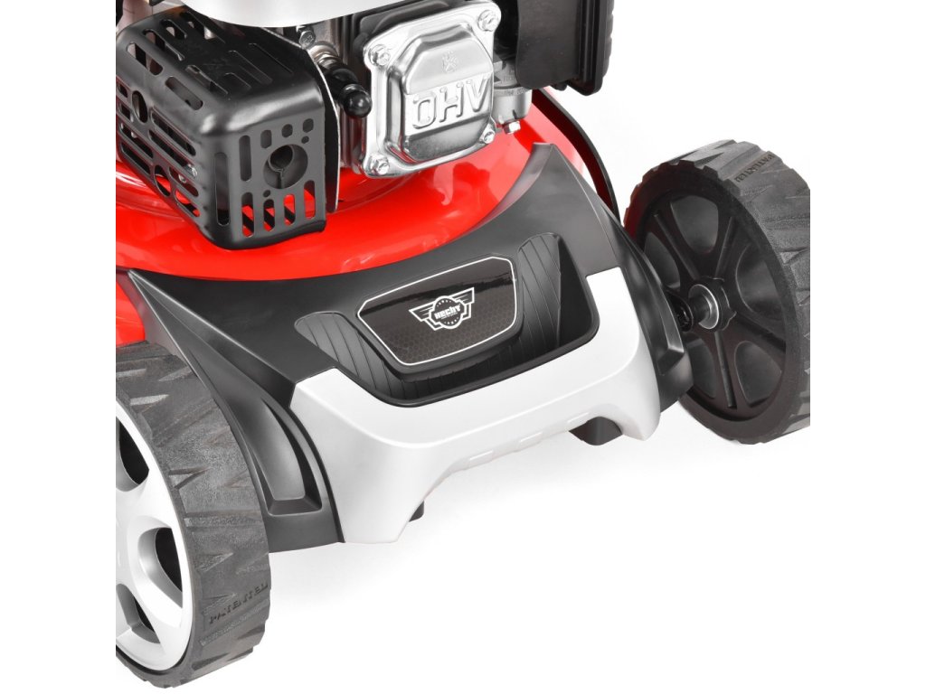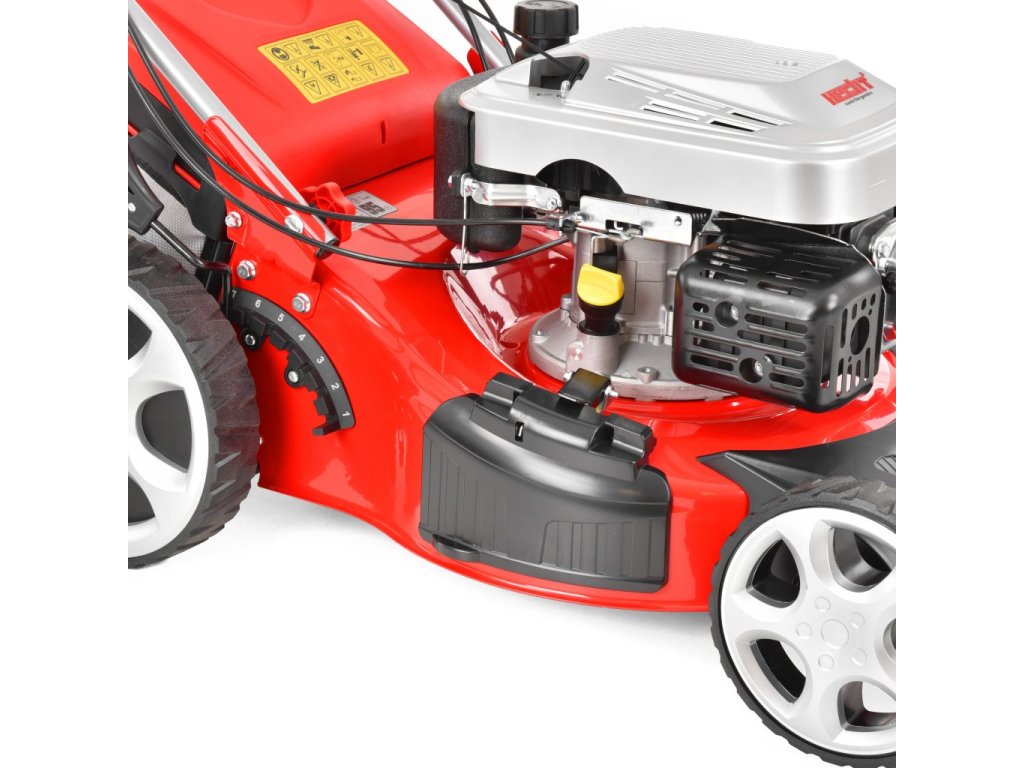 Provoz zajišťuje kvalitní motor HECHT OHV o jmenovitém výkonu 2,4 kW, který spolehlivě zvládne žací nůž i pojezd. Pro hladký chod je sekačka vybavena kvalitní převodovkou GT Synchro a kuličkovými ložisky ve všech kolečkách. Díky nastavitelné rychlosti pojezdu (4 rychlosti) si rychlost sečení pohodlně přizpůsobíte přesně podle sebe.