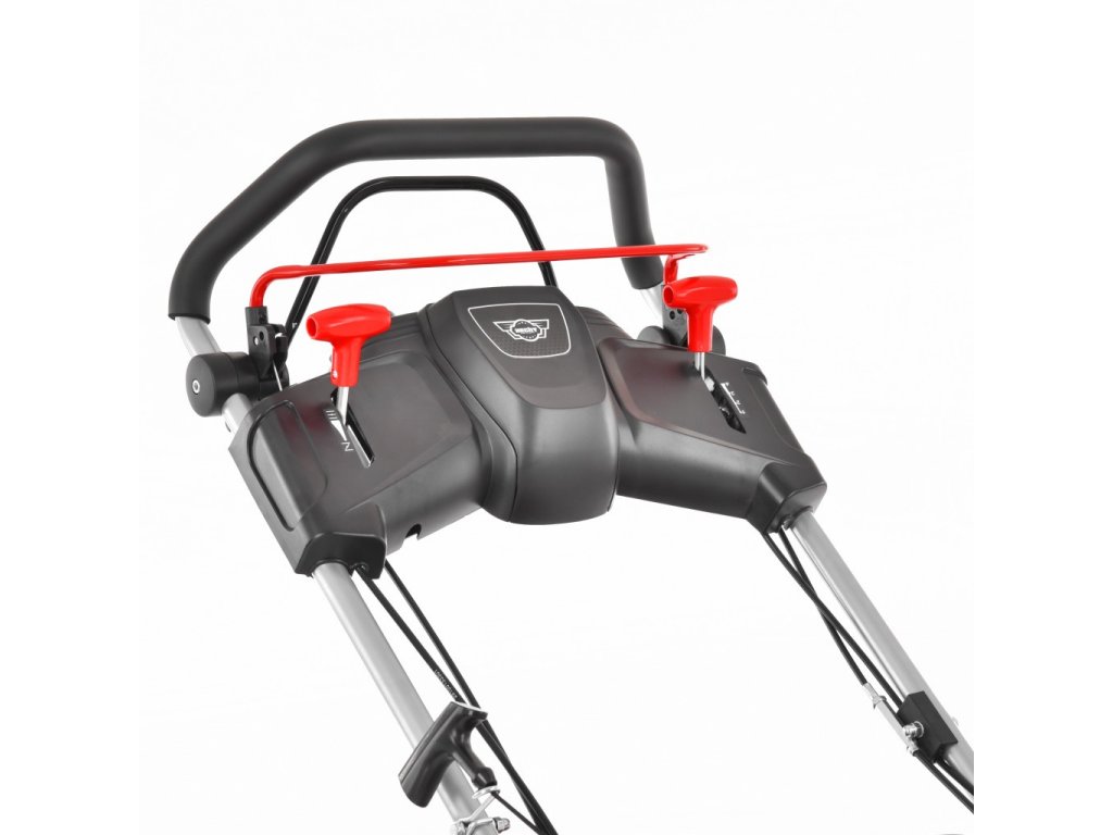 Ovládání sekačky pro každého – celá sekačka je ergonomicky navržena tak, aby zajišťovala co nejpohodlnější užívání spolu s perfektními výsledky sečení. Sedmistupňové centrální nastavení výšky zdvihu od 25 do 75 mm zaručí optimální využití na každé zahradě. Pohodlné madlo s měkčeným úchopem lze snadno nastavit dle výšky postavy nebo složit pro lepší skladování. Dlouhá madla pro ovládání brzdy a pojezdu jsou vhodná jak pro praváky, tak pro leváky. Pro pohodlné přenášení je sekačka navíc vybavena předním madlem.