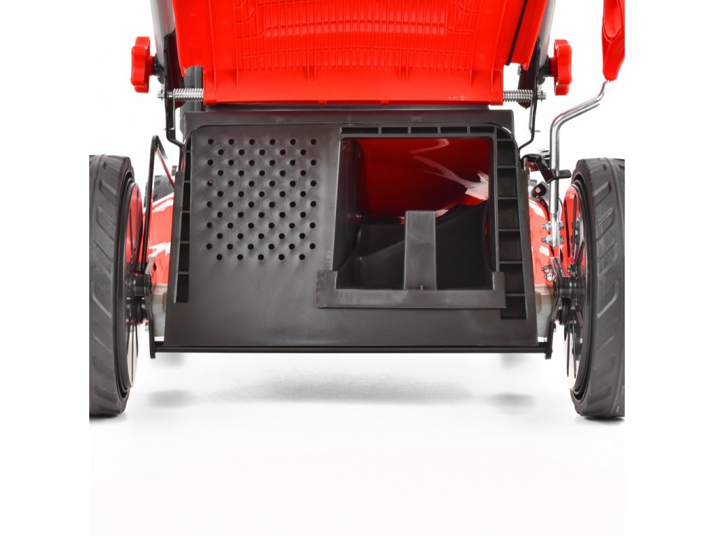 - Obvod koše z pevné prodyšné tkaniny zlepšuje proudění vzduchu a tím je zaručen skvělý sběr trávy