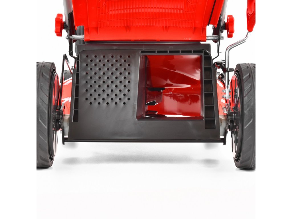 Motorová sekačka na trávu s pojezdem ● Pracovní záběr: 51 cm ● Objem motoru: 175 cm3 ● Výkon motoru: 2,8 kW ● Objem koše: 70 l ● Max. doporučená plocha: 2000 m2