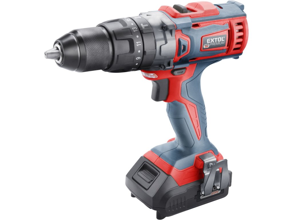 Lehký a výkonný dvourychlostní vrtací aku šroubovák s příklepem Vám poskytuje vysoký vrtací výkon při vrtání do široké škály materiálů - ocel, kovy, dřevo, plast, ale s příklepem také do zdiva. Je určen pro náročnější práce a díky svému příjemnému designu se s ním velmi dobře pracuje i při dlouhodobém používání. Srdcem vrtačky je vysoce výkonný motor se spolehlivou a dlouhodobě ověřenou konstrukcí a celokovová převodovka zajišťující bezchybný chod při i vysoké zátěži. Díky aretaci sklíčidla lze snadno měnit vrtáky jednou rukou. Pro běžnou práci dostačují jeden nebo dva 2000mAh akumulátory, které můžete rychle nabít v rychlonabíječce, pro náročnější nebo delší práci doporučujeme větší akumulátory s kapacitou 4000–8000mAh. Akumulátor lze použít ve všech typech nářadí řady EXTOL SHARE20V. Díky použité Li-ion technologii je ho možné kdykoliv dobíjet, aniž by se tím snižovala jeho kapacita. Li-ion akumulátor ztrácí energii vlivem samovybíjení velmi pomalu a vydrží dlouho nabitý a připravený k použití.