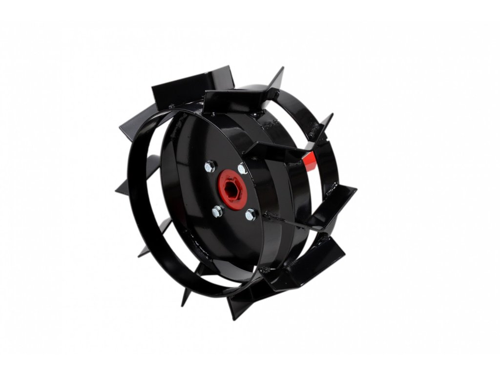 Ocelová lopatková kola pro kultivátor HECHT 7100. Kola jsou určena pro práci v zemině, na záhonech a políčkách pro použití s dalším příslušenstvím. Průměr a šířka kol jsou optimalizovány pro maximální využití výkonu stroje v nezpevněném terénu. Jsou dodávána jako pár. Průměr kola je 31 cm, průměr kola i s lopatkami je 39 cm. Šířka kola je 17 cm. Kola jsou dodávána s pevnou hřídelí, ke které jsou připevněna čtyřmi šrouby. To dává možnost dodatečně je osadit dvojicí závaží HECHT 007101 (2 x 12 kg) a tím ještě zvýšit jejich trakci. Závaží je nutné samostatně dokoupit, nejsou součástí dodávky kol.